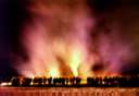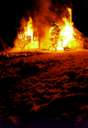 FEUERSKUNST Bernhard Luginbühls brennende Silvester-Holzskulptur im Schnee auf dem Gurten, 31.12.1999. Fotos © Daniel Bernet.